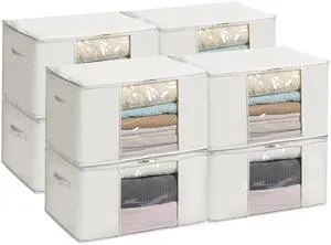 TYEERS Large Storage Bags with Zipper and Clear Window, Cotton Blended Fabric Storage Containers for Seasonal Clothes and Bedding, 23.6x15.7x13.8 Inches, 8-Pack, Beige