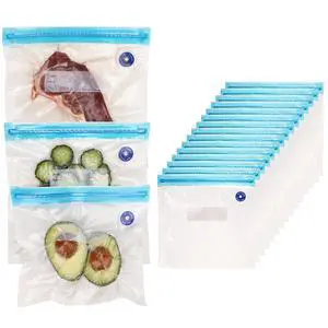 Food Vacuum Sealer Bags 15 Pack Reusable Bags with Leakproof Zip Seal & Air Valve Microwave, Freezer & Reusable Sous Vide (Small)