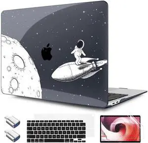 TWOLSKOO for MacBook Air 13.3 inch Case 2021 2020 2019 2018 Release M1 A2337 A2179 A1932 with Touch ID, Plastic Hard Shell Case & Keyboard Cover & Type C Adapter, Flying Astronauts