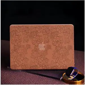 BYCeKe Compatible with MacBook Air 13.6 inch Case 2022-2025 M4 A3240 M3 A3113 M2 A2681,for MacBook 13 M4 Embossed Floral Leather Plastic Print Hard Shell & Keyboard Cover for Mac Air 13.6, Retro Brown
