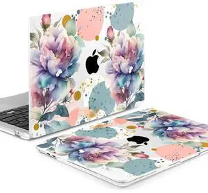 Yebiseven Case for M4/M3 MacBook Pro 16 inch 2024 2023 2021 Model A3403/A3186/A2991/A2485/A2780, Hard Shell Case with Keyboard Cover & Trackpad Protector & OTG Adapter, Peonies Flowers
