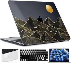 TWOLSKOO for M4 MacBook Air 13.6 inch Case 2025-2022 Release M4 A3240 M3 A3113 M2 A2681, Plastic Hard Shell & Screen Protector & Keyboard Cover & Trackpad Film, Golden Mountain