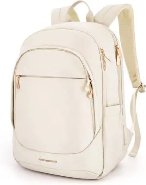 LIGHT FLIGHT Travel Laptop Backpack Women, 17.3 Inch Laptop Backpack with USB Charging Hole, Water Resistant College Bookbag, Black Computer Backpacks for Work,Beige