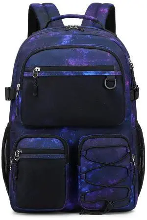 Lohol Multi-Pocket Backpack for Travel College, Heavy Duty Big Bookbag with 15.6 inch Laptop Compartment (Black Purple Galaxy