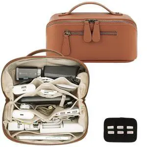 Divvia Electronic Organizer Accessory Tech Pouch Water Resistant Travel Bag for MacBook Charger, Cables, Power Bank, Hard Drive, Cords Storagewith Removable Card Slots for Memory Card(brown)