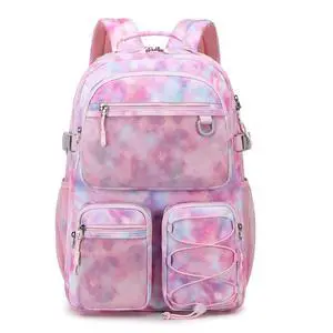 Lohol Multi-Pocket Backpack for Travel College, Heavy Duty Big Bookbag with 15.6 inch Laptop Compartment (Pink Galaxy