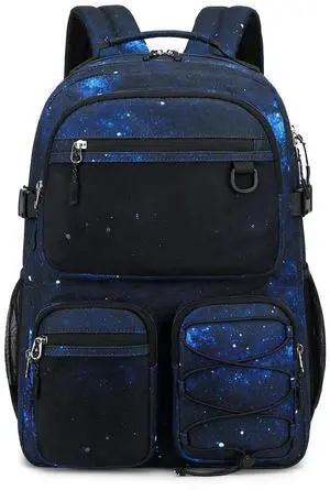 Lohol Multi-Pocket Backpack for Travel College, Heavy Duty Big Bookbag with 15.6 inch Laptop Compartment (Black Blue Galaxy