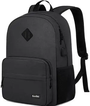 School Backpacks for Teen Boys Girls, Laptop Backpack with USB Charging Port, 15.6 Inch Water Resistant College Bookbag Daypack for Men Women, Black
