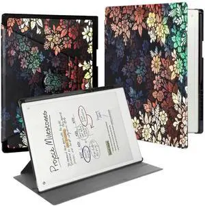 QIOFEARTH Rotating Case for 11.8" Remarkable Paper Pro Tablet (2024 Released) Lightweight and Hard Back Shell Protective Book Folio Cover,Auto Sleep/Wake,Pen Holder and Pen Tips Box (Colored Flower)