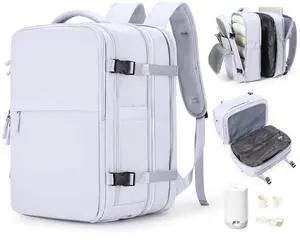 Vacuum Backpack Travel with Electric Vacpack Pump, Vacuum Compression Bags Travel Backpack for Women Men, Flight Approved Waterproof Carry on Backpacks Laptop Work Weekender Daypack, White, Medium