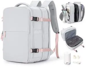 Vacuum Travel Backpack with Air Pump Expandable Air Vacpack Backpack With Vacuum Seal Bag Business Laptop Backpacks for Women Men Air Compression System Carry-On Suitcase Luggage Grey