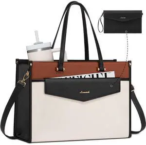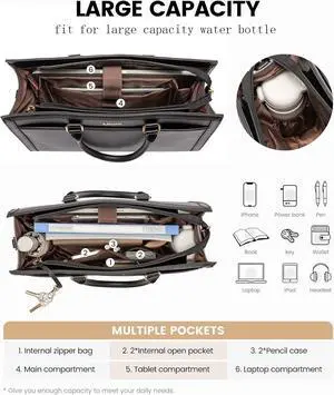 LOVEVOOK Laptop Tote Bag for Women, Leather Office Work Bag Briefcase fit for 17.3 inch Laptop, Large Teacher Computer Bag Handbag,2pcs Set