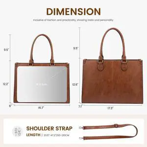 Laptop Tote Bag for Women, 15.6 Inch Large Capacity Vintage Leather Work Computer Bag, Business Casual Shoulder Handbag, Dark Brown