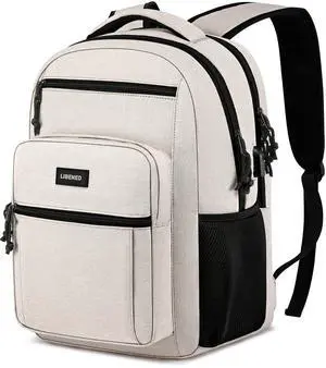 LIBENED School Backpacks for Teens Boys and Girls, Laptop Teens backpack with USB Charging Port, 15.6 Inch Water Resistant Mochila for Work, College, Beige