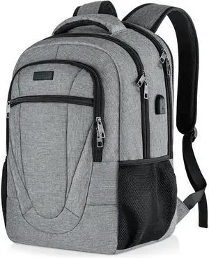 Travel Laptop Backpack, Backpacks for School College Teens, Business Anti Theft Slim Sturdy Backpack for Woman and Men with USB Charging Port, Adult Computer Work Backpack for 17 IN Laptop, Grey