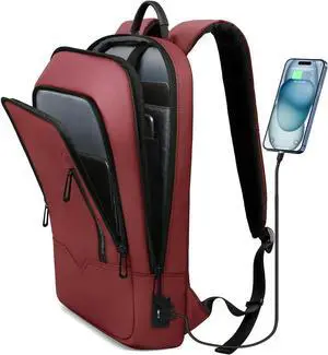 hk Backpack for Men Business Slim Backpack with USB Charger Computer Lightweight Anti-theft Travel (Red, 15.6 Inch)