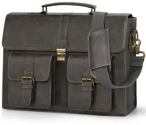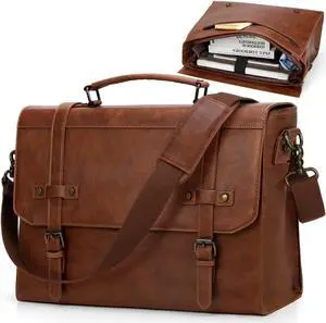 Leather Briefcase for Men - 15.6 Inch Business Laptop Bag - Water Resistant Vintage Messenger Bag - Brown