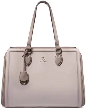 LOVEVOOK Laptop Tote Bag for Women, 15.6 Inch Waterproof PU Leather Work Bag, Professional Computer Bags Business Office Work Briefcase Handbag Purse Shoulder, Office Gifts for Women, Gray