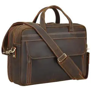Masa Kawa Vintage Full Grain Leather Briefcase for Men 17" Laptop Computer Brief Case Business Travel Work Messenger Cross Body Shoulder Bag