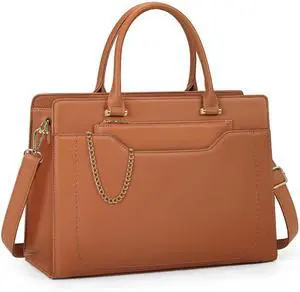 RAINSMORE Laptop Bag for Women 15.6 Inch Laptop Tote Bag Waterproof Leather Work Bags Professional Computer Briefcase Large Capacity Handbag for Business Teacher Office, Brown