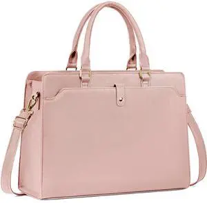 GMAK Laptop Tote Bag for Women, 15.6 Inch Leather Computer Bags Lightweight Business Office Work Briefcase Large Capacity Waterproof Handbag for Daily Commute Travel Work, Pink