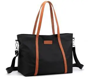 Laptop Bag Waterproof Lightweight Shoulder Tote for Women Nylon Briefcase Computer Work Handbag Fits 15.6 inch (Black)