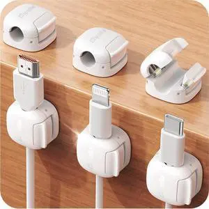 iWALK Magnetic Cable Holder, Reusable Adhesive Desktop Cord Organizer for 2-6mm Cables,4 Clips for Lightning & USB C/Micro Cables,Sticks to Wood,Glass,Metal, Marble, 2-Pack,White