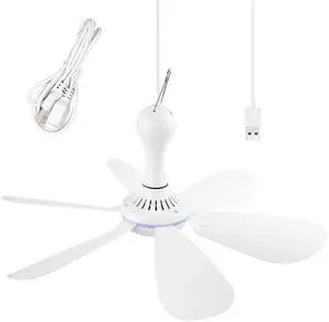SCOOYEEES Silent USB Powered Ceiling Canopy Fan with 1m Extension Cord, Small Portable 6 blade Quiet Small DC USB Ceiling Fan Hanging Fan for Camping Bed Dormitory RV Tent Home Room
