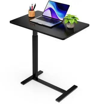 Overbed Bedside Table with Hidden Casters, Adjustable Pneumatic Mobile Laptop Computer Standing Desk, Rolling Laptop Table, Movable Overbed Table Hospital Home Use, Black