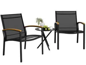 Shintenchi 3 Pieces Patio Bistro Sets, Outdoor Textilene Fabric Conversation Bistro Set, Textilene Fabric Front Porch Chairs Small Patio Furniture Set with Table for Lawn,Garden,Balcony (Black)