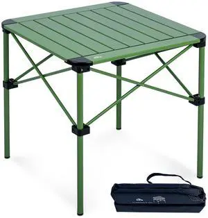 Lightweight Stable Alu. Folding Square Table Roll Up Top with Carry Bag for Camping Picnic Backyards BBQ Camp Kitchen (Green, M)