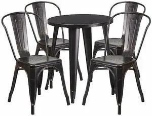 Flash Furniture Chauncey Indoor-Outdoor 24" Round Table Set with 4 Cafe Chairs Black-Antique Gold (CH518TH418CBQ)