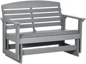 2-Person Outdoor Glider Bench Patio Double Swing Rocking Chair Loveseat w/ Slatted HDPE Frame for Backyard Garden Porch, Light Gray