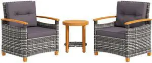 3 Piece Bar Height Outdoor Bistro Set for 2, Round Patio Pub Table 2 Bar Chairs with Comfortable Design & Strong Build, Charcoal Gray