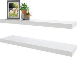 BAMEOS Floating Shelves,31 in W White Wall Mounted Wooden Shelves with Invisible Brackets Set of 2, Hanging Wall Shelves Decoration for Bedroom, Bathroom, Living Room and Kitchen