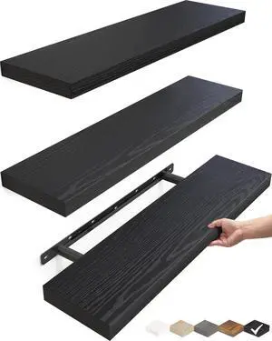 BAYKA Floating Shelves for Wall, 22.5 inches Wall Mounted Rustic Wood Shelves for Bathroom, Bedroom, Living Room, Floating Shelves for Books/Storage/Decor (Black,Set of 3)