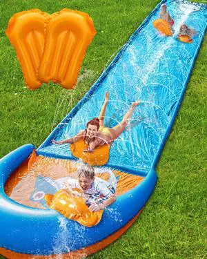 Spring Water Slip and Water Slide, 22FT Lawn Slip n WaterSlide for Kids Adults, Backyard Summer Outdoor Water Toys with Sprinkler, 2 Inflatable Bodyboards