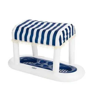 FUNBOY Giant Floating Navy Cabana Stripe Drink Station, Removable Fabric Shade with Fringe, Perfect for Parties, Table-Top Decorations and in-Pool Refreshments.