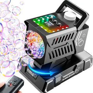 Bubble Machine Remote Control,1800mAh Rechargeable Battery 100 Mins/USB-C Charging,Auto Rotation & 11 RGB Lights,Top-Fill Portable Bubble Maker for Outdoor Birthday Party Pool Wedding Camping
