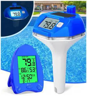 DURFICST Digital Pool Water Thermometer, Easy-to-Read Digital Thermometer with Indoor Temperature and Humidity Monitor for Swimming Pools, Fishing Ponds, Bathtubs, Hot Tubs, Aquariums
