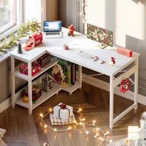 Casacomoda 40 Inch L Shaped Computer Desk with 3 Storage Shelves, Small Reversible Corner Desk for Small Space with Hock, Home Office L-Shaped Desk, White
