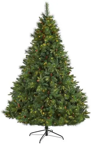 Nearly Natural 7.5' West Virginia Pine Christmas Tree w/600 LED and Cones