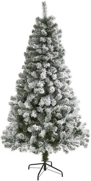 Nearly Natural 6' Flocked West Virginia Fir Christmas Tree with 550 Tips