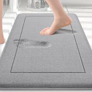 Memory Foam Bath Mat, Soft Absorbent US Designed Bathroom Rug, Gripping Dots Machine Washable Bathmat, Cushioned Floor Mats, Shower Sink Rugs Room Décor Accessories, 24x17 Graphite Gray