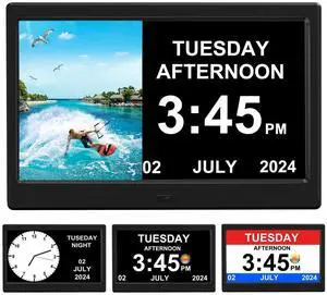 Digital Wall Clock with Date, Indoor Temperature, Auto-DST, Battery-Operated Digital Clock, 8 Inch Small Decorative Wood Wall Clock for Bedroom, Living Room, Kitchen, Office, Modern, Electric, Simple- Type: Clear LCD Display