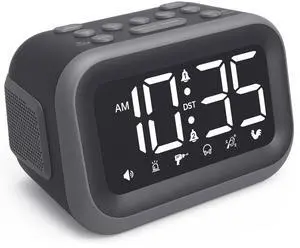 Super Loud Alarm Clock: 115dB Dual Alarms and 6 Alarm Sounds for Heavy Sleepers - Adult Shift Workers in Bedroom or Daily Wake-Up Use - Gray