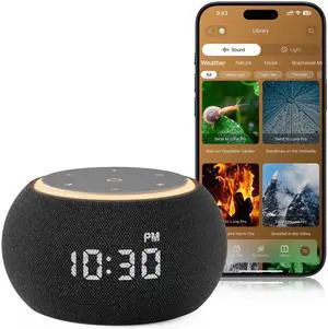 Sound Machine Alarm Clock Wireless Charger: Bluetooth 10W Stereo Sound Speaker Bedroom - White Noise Machine for Sleeping with 21 Soothing Sounds