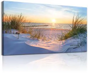 MHARTK66 Wall Decor For Living Room Large Canvas Wall Art For Bedroom Modern Office Pictures Wall Artwork Blue Sun Beach Grass Ocean Landscape Paintings Canvas Art Prints Home Decorations