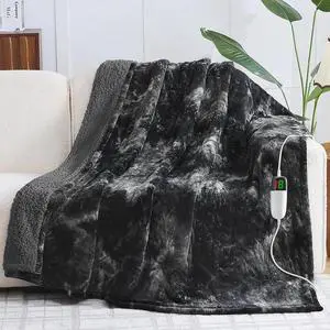 Faux Fur Sherpa Heated Blanket with 10 Heat Levels and 8 Hour Auto Off black 50x60