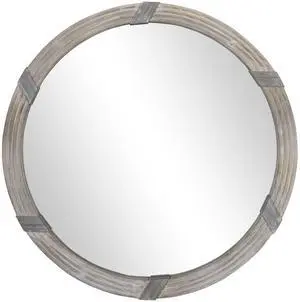 30.75" Wood Wall Mirror, Farmhouse Decorative e Round Mirror for Wall Decor in Living Room, Bedroom, Natural Wood Color